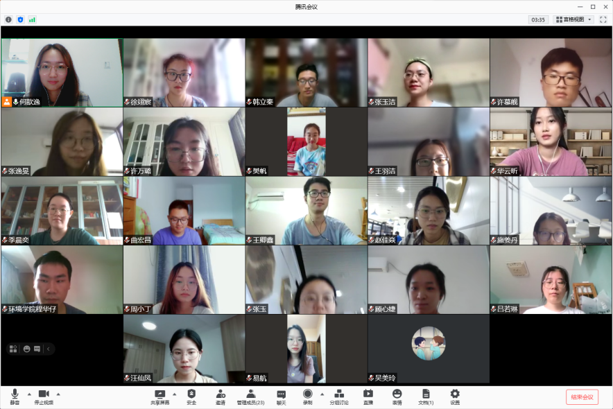 活动最后,周媛作总结讲话。她向同学们转达了学院党委书记刘建萍、院长任洪强的问候,表达了学院领导和老师们对同学们的牵挂,为同学们配合学校和属地疫情防控管理要求的行动点赞。她表示本科生党支部工作扎实、台账清晰,尤其是"星火菁英计划"等创新性活动颇具特色,希望支部继续保持良好的学习传统,深入推进"九个必须",开展常态化党史学习,强化党员服务工作。她希望,每位党员认真学习学习习近平总书记在庆祝中国共产党成立100周年上的讲话精神,进一步增强对内容的了解、加深对内涵的理解,并结合学习任务、学科特点,特别是我国生态文明建设的战略规划,以学促行,为将来投身社会、服务社会、奉献社会打好基础。最后,她希望同学们谨记习近平总书记的教导,争做有志气、骨气、底气的青年人,将个人成长与国家命运紧密结合,成为国家生态文明建设的生力军,为建设美丽中国贡献力量!