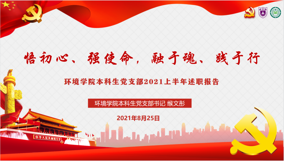 第二个环节,缑文彤作题为"悟初心、强使命,融于魂、践于行"述职报告,回顾了2021年上半年支部的工作情况及建设成果。在支部建设方面,支部坚持实行"三会一课"制度,结合党史学习教育主题,深入开展"两学一做"常态化学习教育活动,通过建立《入党积极分子成长档案》进一步完善了入党积极分子管理制度;在党史学习教育方面,支部认真贯彻"学史明理、学史增信、学史崇德、学史力行"要求,围绕献礼建党100周年开展"星火菁英计划"应知应会每日分享,组织党员学习"美丽中国 红色筑梦"系列党团课,积极开展"美丽中国 红船筑梦"系列党团实践活动。支部党员赴南京市红山动物园和南京仙林外国语小学开展生物多样性科普调研,以实际行动助力绿色可持续发展,通过开展"诵红色经典,忆百年征程"诗歌朗诵会、"百年征程,携手逐梦"师生联谊拔河赛、采访学院老党员同志等,引导支部成员在实践中感悟党史教育精神、锤炼党性修养、汲取初心力量,将红船精神融于魂、践于行,2021年,党支部荣获嘟嘟成人网 "先进基层党支部"荣誉称号。针对工作中存在的特色活动创新性有待提升以及志愿活动覆盖面窄等问题,缑文彤提出下半年将加强与学院团学组织的联动,打造富有专业特色的本科生支部品牌活动。